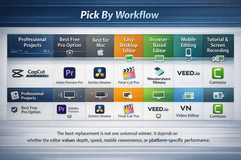The right replacement depends on what you're actually doing. Premiere Pro and DaVinci Resolve are the strongest options for editors working on professional or complex projects. Final Cut Pro is worth the price if you're on Mac. Filmora is a practical middle ground for desktop users who want more than CapCut without a steep learning curve. And if you mostly edit on a phone, VN or InShot will cover most of what CapCut offered without the data concerns that come with it.