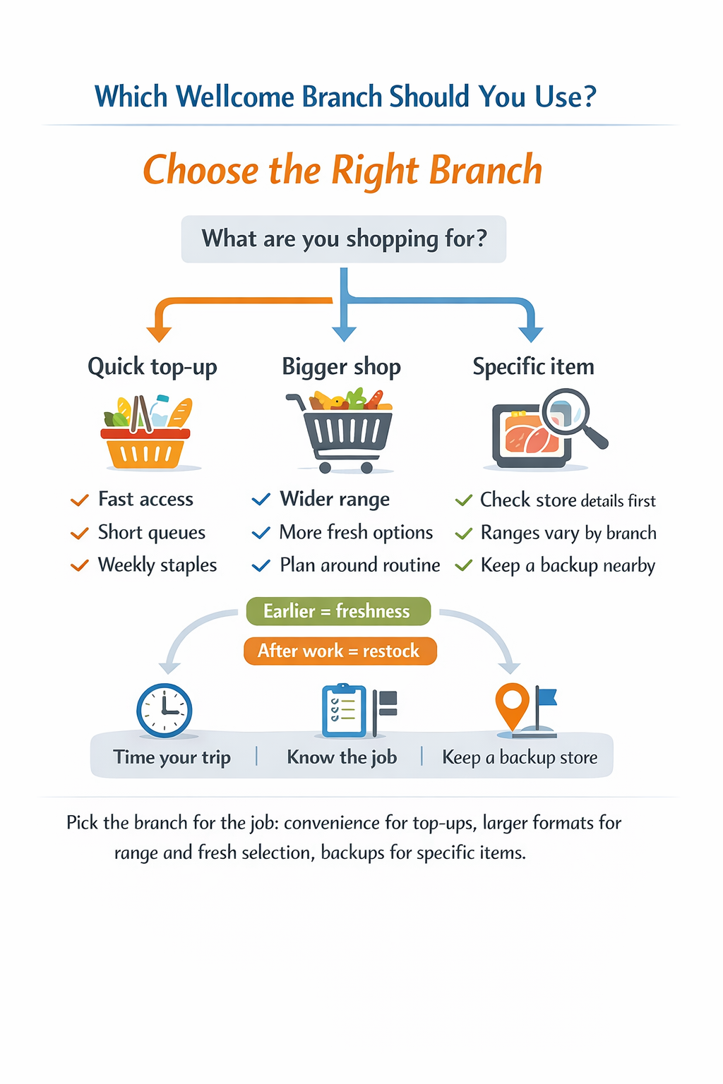 To choose the right branch, start with the job you need it to do. If you’re doing a quick top-up (milk, bread, fruit, last-minute dinner), pick the most convenient neighbourhood store and focus on speed: easy access, shorter queues, and the basic staples you buy every week. If you’re planning a bigger shop, look for a larger branch that typically carries a wider range and more fresh options, then time your trip around your routine after work for pantry restocks, or earlier in the day if you care most about freshness and full availability. If you’re shopping for a specific item (an imported brand, a particular cut, a dietary product), check the store details first and keep a backup option nearby, because ranges can vary by branch and local demand.