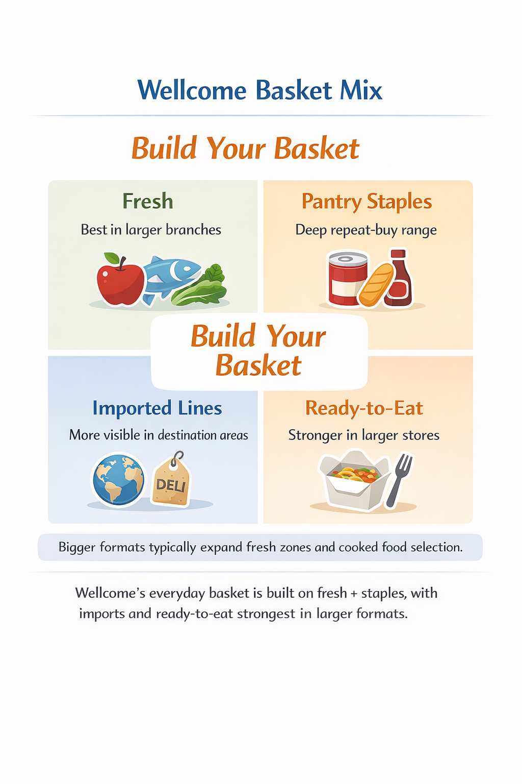 What Wellcome sells best: fresh, pantry staples, imported lines, and ready-to-eat